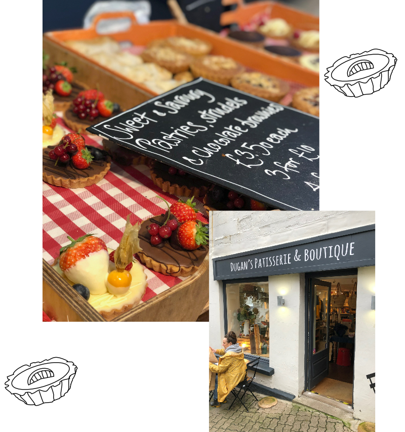 Find our Take Away on The Pavement near the Clock Tower within easy walking distance of the main car park on Oxford Rd. From Thursday to Saturday find delicious French Style Patisserie, a Loaded Seasonal Salad Bar, Great Wines from Small Producers and a selection of Unique Clothes and Kitchenalia in our Boutique.