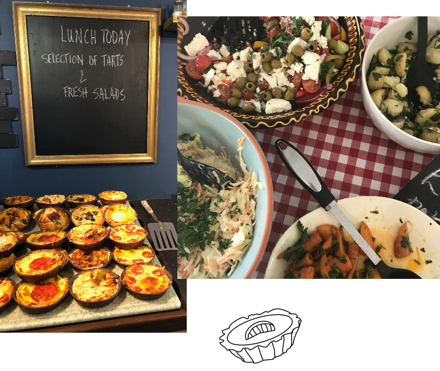 * We cannot guarantee all tarts and salads as described are available because we change monthly. Please download our Full Menu to see what's available now.
